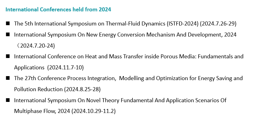 China-U.S. Seminar on Two-Phase Flows and Heat Transfer 1984.5, sponsored by Academician Chen Xuejun. The 7th & 8th International Symposium on Multiphase Flow, Heat Mass Transfer and Energy Conversion were held in Xi’an