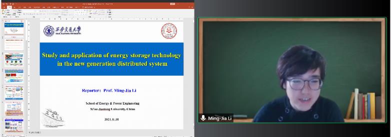 Subsequently, Prof. Mingjia Li. Mingjia Li delivered a presentation titled Study and application of energy storage technology in the new generation distributed system. Prof. Mingjia Li is a professor of School of Energy and Power Engineering, Xi’an Jiaotong University. She was awarded international awards and national awards such as Asian Young Scientist Award, National Young Top-notch Talents Program, Thousand Talents Program of Shannxi Province, and some other awards. She mainly focuses on Energy-saving theories & new methods in efficient energy utilization, Supercritical CO2 power system and Biomass carbon sequestration. She published many journal papers with the h-index of 34, and 13 of them are selected in ESI papers. A total of 26 patents of invention and 7 software copyrights have been authorized. She introduced some dominant technologies of storage material and storage structure that are practically analyzed. Besides that, the dynamic response characteristics of the power generation frequency and efficiency of the energy storage system with a microgrid real-time load were also discussed.