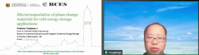 The second keynote speaker is Prof. Yongliang Li. Professor Yongliang Li is a Chair of Thermal Energy Engineering in the School of Chemical Engineering and the Birmingham Centre for Energy Storage at the University of Birmingham, UK. His research focuses on thermal energy conversion, storage, and thermal management. He has published 100+ peer reviewed articles with a h-index of 32. He has won several prestigious awards including the Dorothy Hodgkin Award, the CSC Award, and the Collaborative Development Award for his academic achievements. Prof. Yongliang Li gave a talk with the topic of Microencapsulation of phase change materials for cold energy storage applications. He introduced their works on the microencapsulation of volatile phase change materials, covering both the formulation process and mechanism, as well as the thermal and theological behaviors of the MPCMS and its slurry.