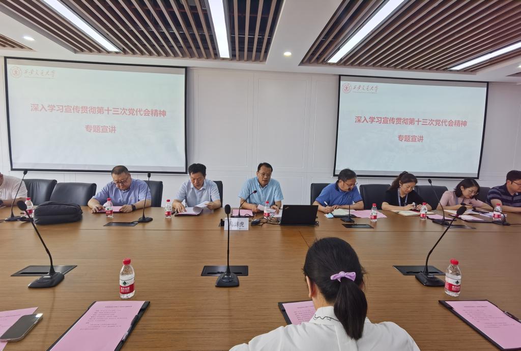 7月5日,校党委副书记马博虎深入司机社 宣讲学校第十三次党代会精神并调研人才培养工作。司机社 党政班子、支部书记、系主任、民主党派及师生代表参加。会议由司机社 党委书记何茂刚主持。司机社 何茂刚书记介绍了此次宣讲会的背景及学校党委的工作安排。马博虎书记在会上对司机社 第十三次党代会精神进行宣讲。首先,带领与会成员学习了习近平总书记关于教育、科技、人才的重要论述,学习聚焦于...