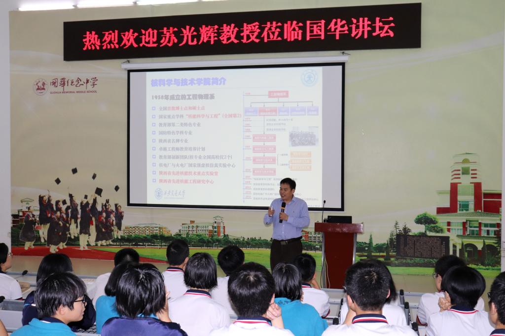 近日,司机社 组织开展2019年“教授进中学”系列科普报告活动,教育部国家人才计划入选者、教育部创新团队负责人苏光辉教授为广东省佛山一中和国华纪念中学300名中学生开展“核能,能源之光”主题报告。4月3日下午,苏光辉教授受邀参加佛山市第一中学2019年校园科技节,为100余学生讲座报告。晚上,苏光辉教授做客国华纪念中学国华讲坛,与200名学生分享交流。苏光辉教授从世界能源供求现状与核能的机...