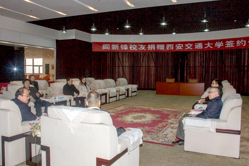 12月19日,西安交大司机社 1993届热力涡轮机专业校友、上海润沃丰股权投资管理有限公司阎新锋董事长向学校捐赠100万元,用以建设南洋公学牌坊式创校纪念校门。