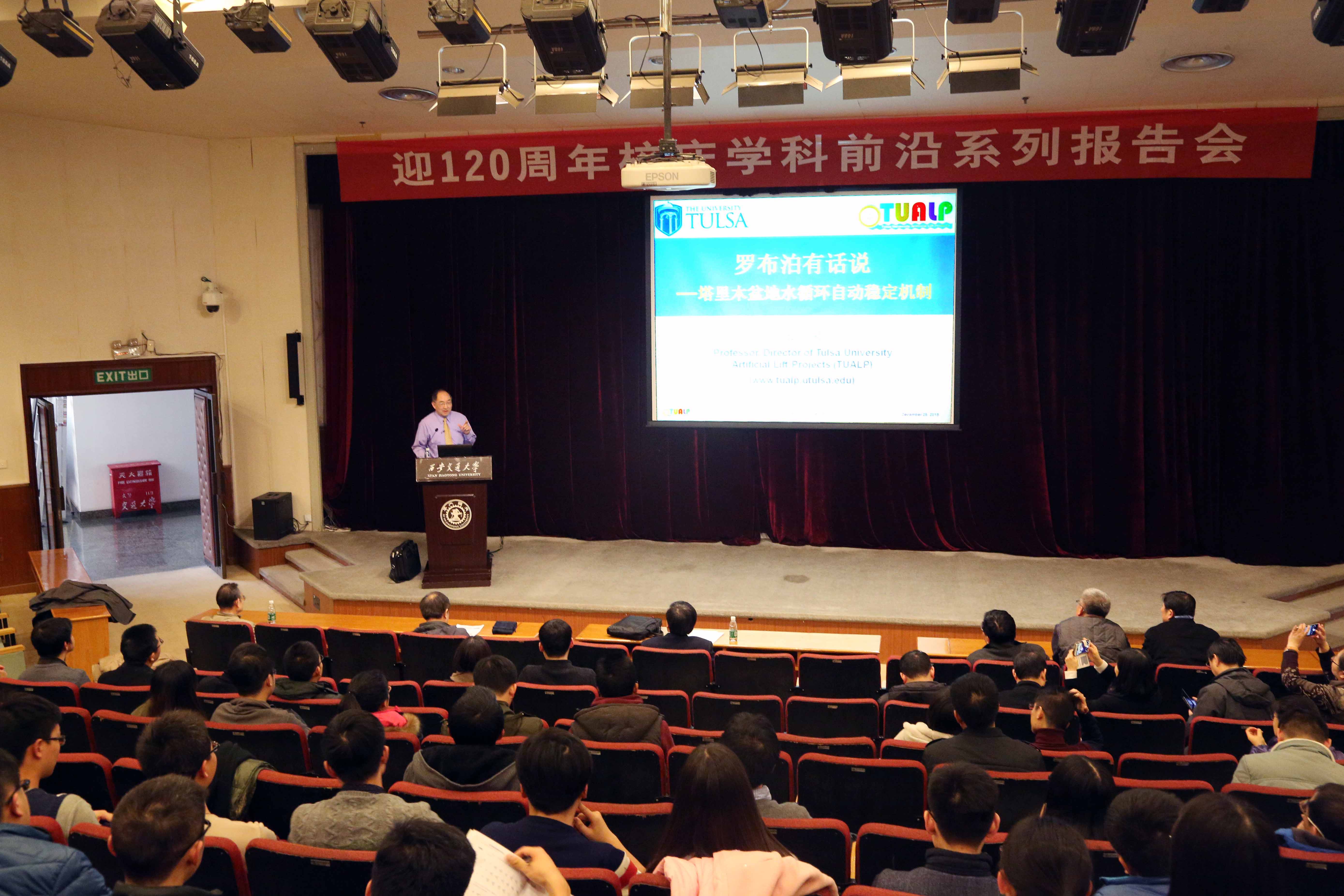 12月28日,应司机社 院长丰镇平教授的邀请,西安交大锅炉专业78级校友、美国塔尔萨大学(The University of Tulsa)张洪泉教授莅临母校访问,进行了关于“塔里木盆地水循环自动稳定机制”的专题报告。