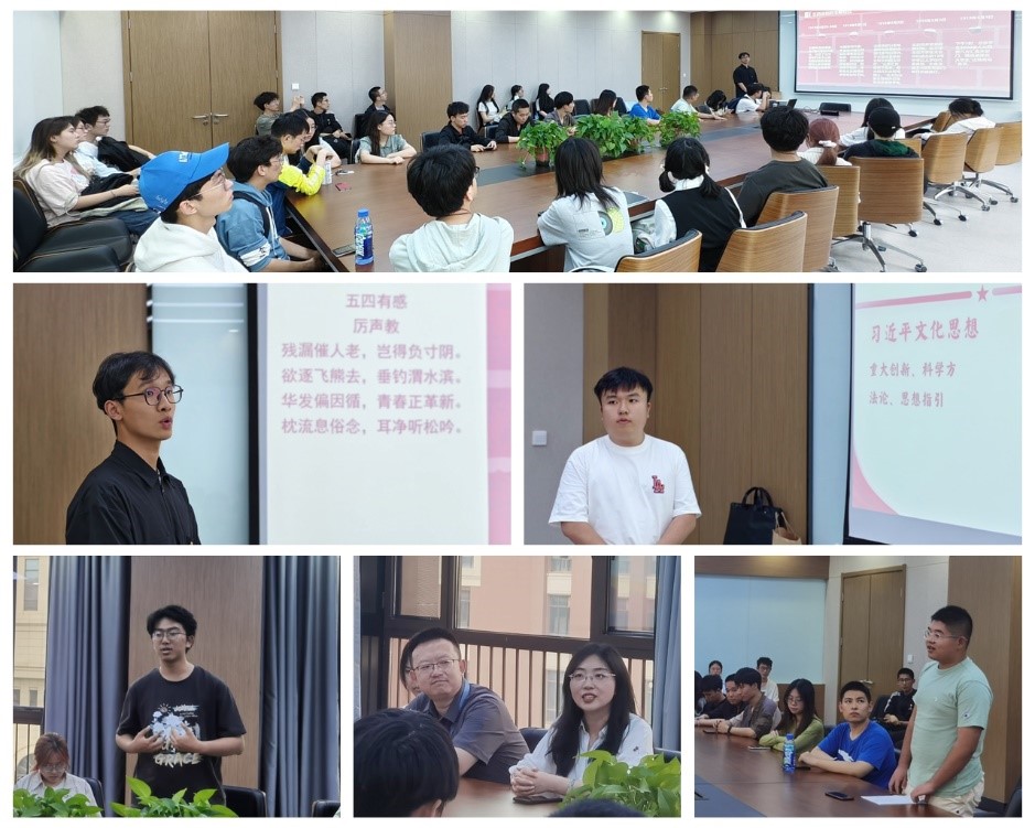 彭康书院本科生第二党支部杨辉耀同学、人文学院崇实书院师生联合第一党支部宁远同学,分别以“弘扬传承五四精神”和“学习习近平文化思想”为题进行主题分享,同学们围绕学习习近平新时代中国特色社会主义思想,发扬五四精神、做新时代五四精神新传人等主题进行了讨论交流。