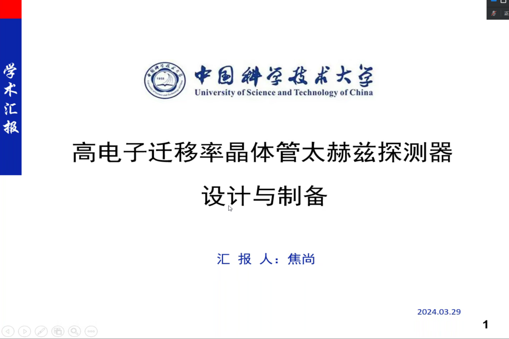 中国科学技术大学热科学和能源工程系2021级博士生党支部焦尚做《高电子迁移率晶体管太赫兹探测器设计与制备》报告,讲述了太赫兹波在不同方面的应用机理。