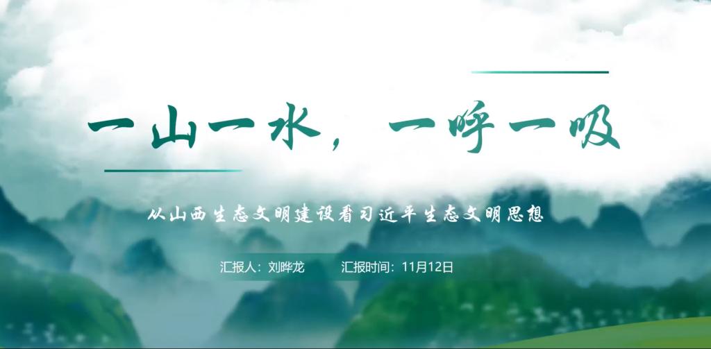 活动第一项为北京大学博士生讲师团成员刘晔龙作《一山一水,一呼一吸——从山西生态文明建设看习近平生态文明思想》理论宣讲报告,系统性阐释了习近平生态文明思想的发展、重要性及其与党的实践理论的关系。