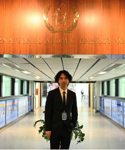 刘啸岳与杨旭冉同在一组开展实习,他谈到,在实习前他对自己在国际组织的胜任力有一定的顾虑,但在团队领导和同事的热情帮助下,他很快就融入工作环境,进入工作状态,他已经准备好为促进原子能对世界和平、健康和繁荣发展作出自己的贡献。
