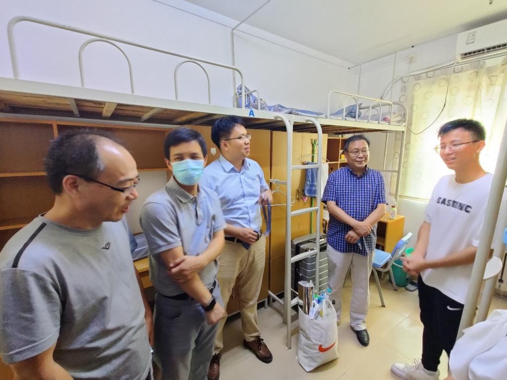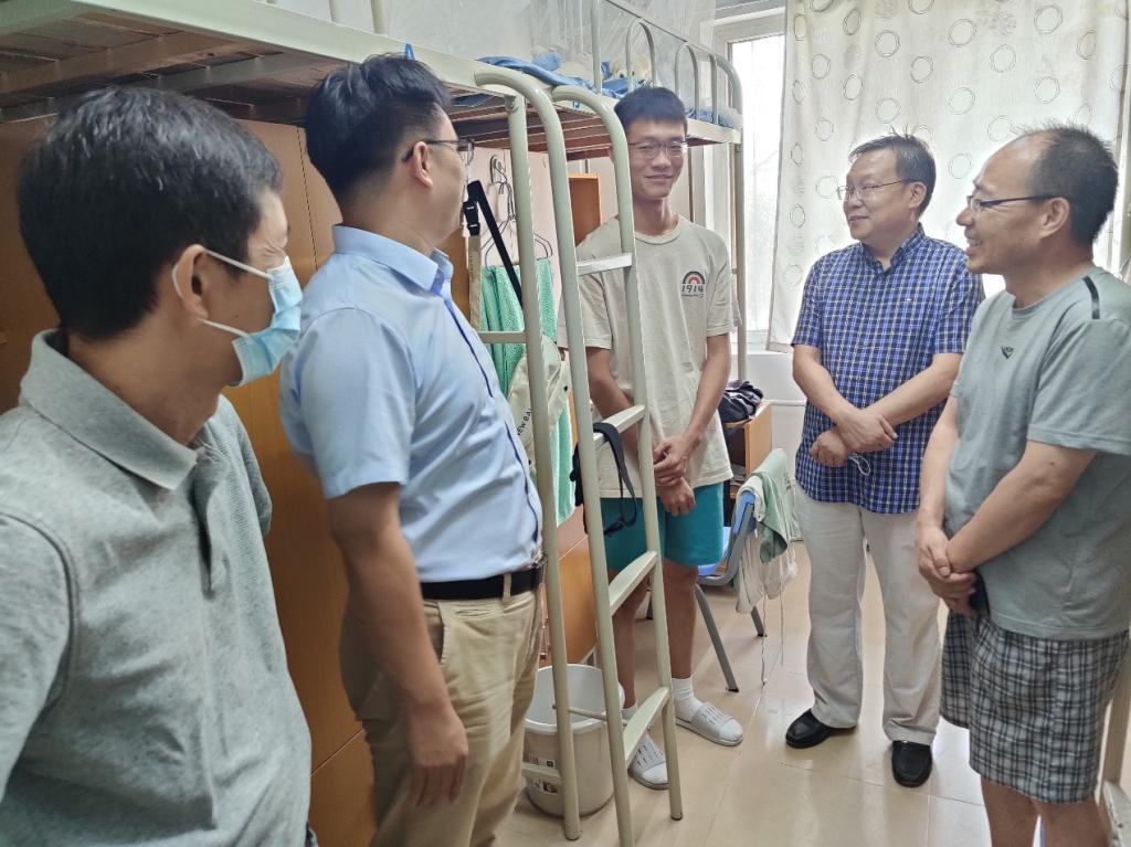在学生宿舍,学院和书院领导了解同学们暑期生活的方方面面,详细询问了暑假留校学生和提前到校的2022级学生的日常生活,并特别向2022级学生提出了要求,希望他们珍惜这一段宝贵的提前到校时光,特别是不要放松自己的学业要求,提前熟悉和了解学校环境,及早融入集体生活,为即将开始的大学生活打好基础、做好准备。