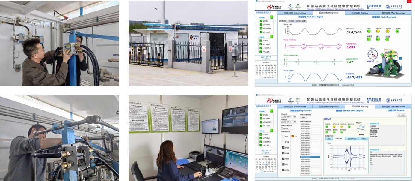 该项目依靠在压缩机领域的深厚基础,历时数年,解决了加氢站压缩机多场耦合工作过程等关键科学问题,突破了增压过程无损重构方法,研发了加氢站压缩机全生命周期健康管理系统核心产品,攻克了传统监测方法在高压氢环境下无法应用的难题。为加氢站了提供多种增压设备故障诊断与健康管理的解决方案,充分提高加氢站运行的智能性和安全性。作为科技冬奥的重要环节,“康谱氢能”已经实现国内首套加氢站压缩机健康管理系统的设计、安装和调试,在冬奥会5个加氢站中完成服役。运营方国电投评价“作为国内首套加氢站压缩机健康管理系统,冬奥会期间数次准确实现了压缩机故障预警,是延庆园加氢站安全可靠运营,服务冬奥举办的重要保障”。