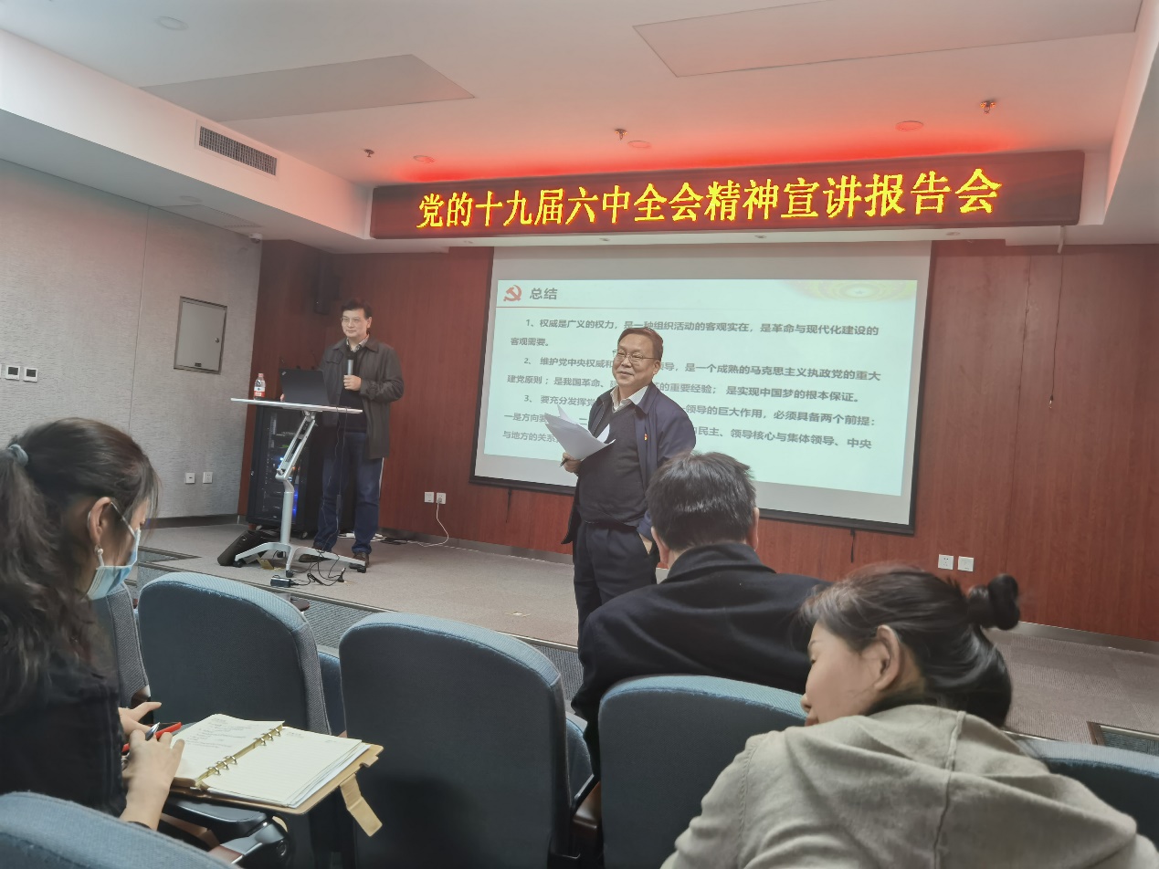 在北二楼会议室举办了学习贯彻党的十九届六中全会精神报告会,邀请马克思主义学院陆卫明教授作专题宣讲报告,学院党政班子成员、分党委委员、中心组理论学习成员、系所党政班子、民主党派代表参加了此次理论学习,报告会由司机社
