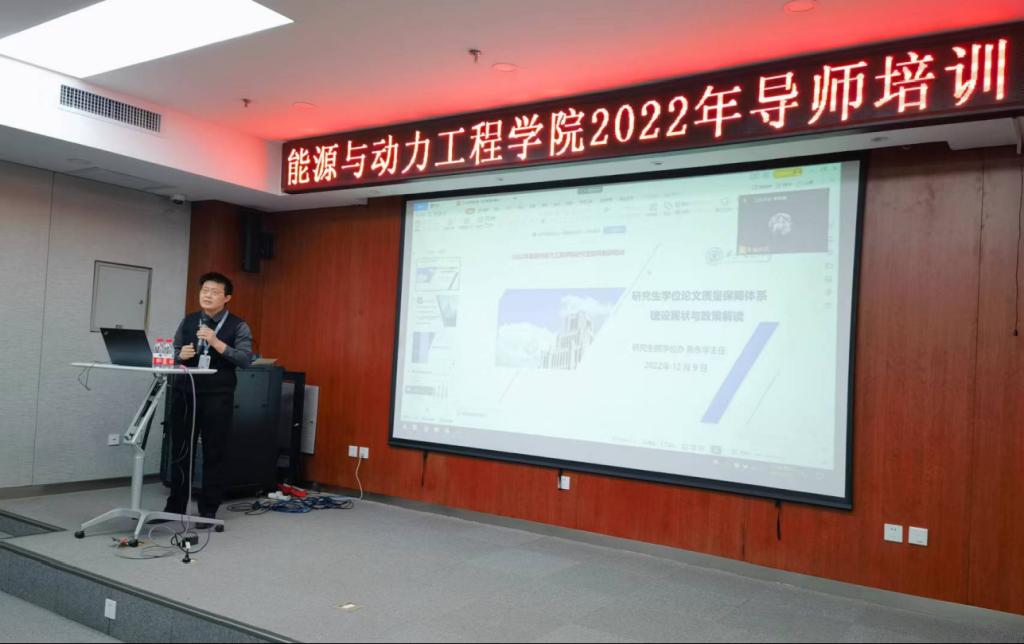 研究生指导教师进行培训讲座。学位办陈永华主任担任主讲人,新增指导教师线下参加会议,其余指导教师线上参加会议,共有90余名老师参会,基本实现各学科各系所硕博导师全覆盖。