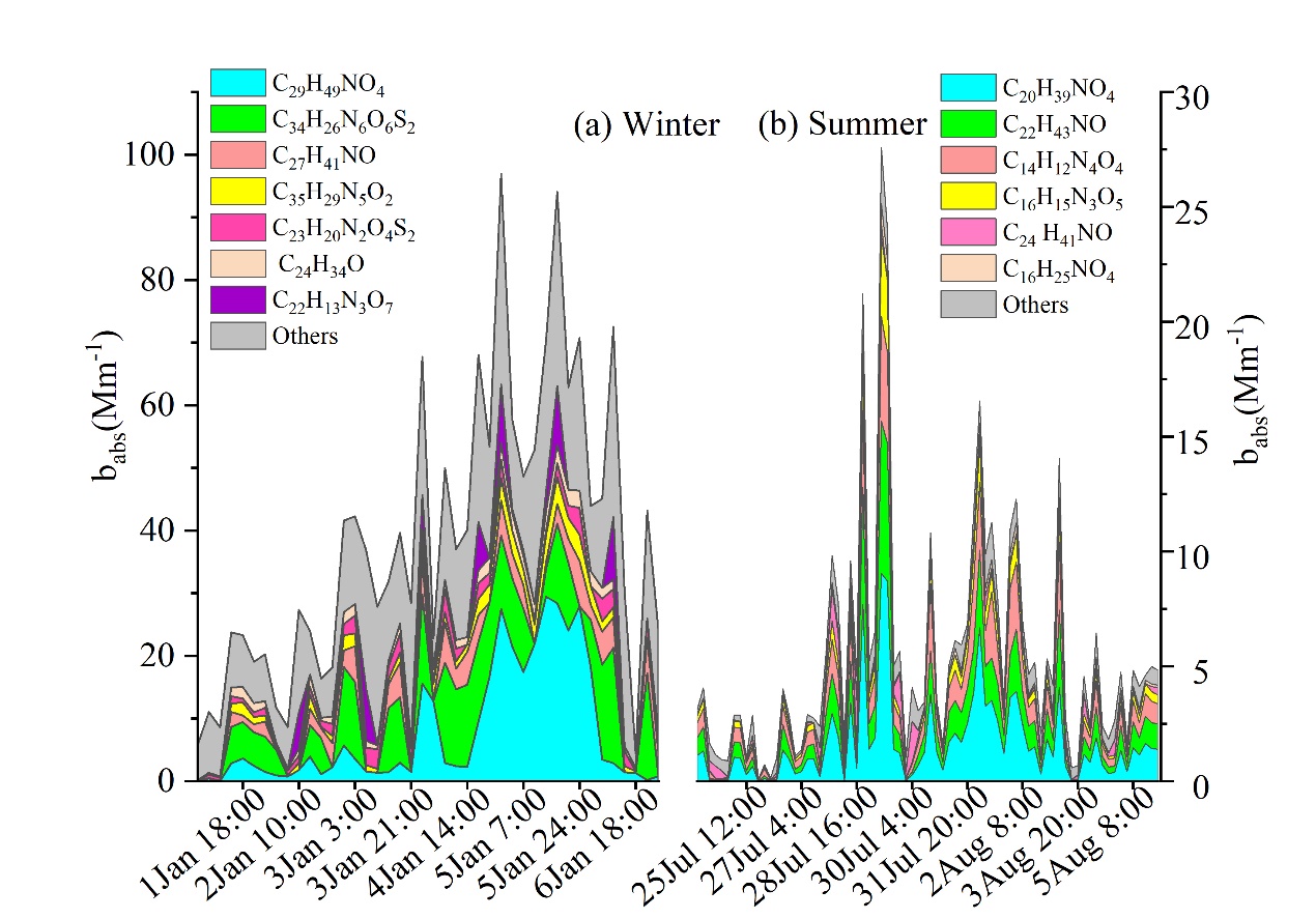 图 西安冬夏季关键棕碳生色分子的吸光贡献
