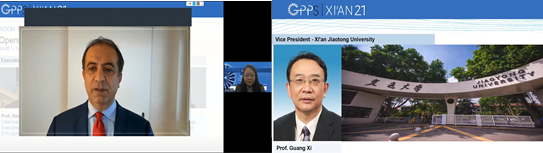 席光副校长和西北工业大学何国强副校长代表两个学校致欢迎词。会议主席丰镇平教授回顾了GPPS西安21会议的筹备情况,指出此次会议有三大新的突破:一是论文数量及参会议人数显著增加,会议共收到来自19个国家投稿的全文论文共238篇,最终录用并参加会议的论文共201篇,其中78%来自中国,文章数量相比于GPPS在2019年和2020年会议分别有78%和171%的大幅增长;二是首次增设了叶轮机械CFD 研讨会,受到了参会者欢迎和好评;三是本次会议举办形式上丰富多样,除了201个论文报告外,还专门邀请了5个主旨报告以及1个企业特邀报告、10个分会特邀主旨报告和28个分会邀请报告。