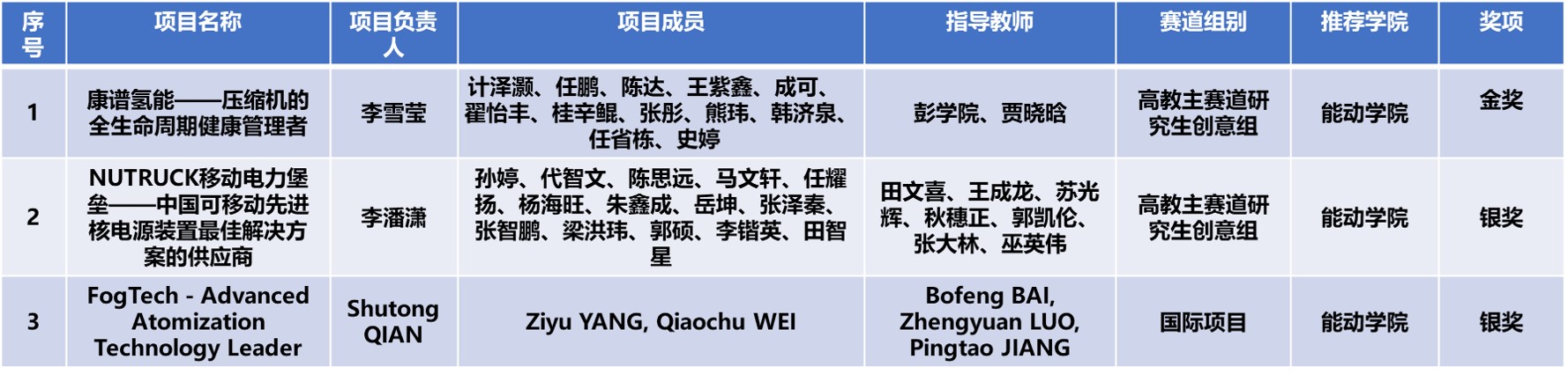 的参与高教主赛道的“康谱氢能—压缩机的全生命周期健康管理者”项目获全国金奖,“NUTRUCK移动电力堡垒—中国可移动先进核电源装置最佳解决方案的供应商”项目获全国银奖,以及由司机社
