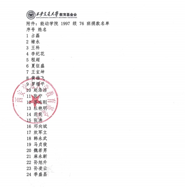 8月,筹备了三个月的30周年、20周年、10周年的校友返校活动因疫情临时取消,至今难以组织大规模的校友返校,但1997级能动76班的同学们仍慷慨捐赠,表达了对母校的感恩之心、对能动学子的殷切希望、对学校教育事业发展的美好祝愿。校友捐赠将用于“司机社 教育发展基金”项目,主要用于在校研究生奖助学金发放,鼓励学子努力奋斗,做出成绩为社会贡献力量。