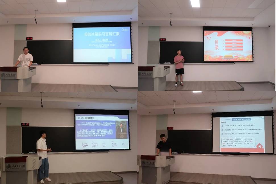 各实践团队代表队员通过视频、ppt等形式图文并茂地向大家展示了社会实践期间的实践成果,与现场老师同学们交流了实践经验,将实践中队员们遇到的问题总结起来跟大家分享,取长补短,共同提高。通过汇报,每支队伍都对实践有了更为准确的定位,对实践的认识和思考高度都有所提升,更重要的是,在实践和访谈过程中大家都得到了不小的收获。去到线下企业和研究所见习的团队不但对企业的文化和行业的现状有了直观的把握,同时还参与了与专业相关的项目学习。进行线上实习的团队也收获颇丰,大家克服重重困难和阻力,在与企业交流研讨的过程中,培养了队员们的韧性和责任感。通过对调研结果的分析,不但让队员们清晰的了解到目前社会以及行业相关的局势,更能提高大家对问题的总结和思考的能力。