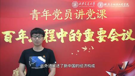 硕9034党支部王友说到,我有幸能够参与到《1953年中共中央政治局会议》主题的青年党员讲党史课程录制。借助这次录制机会,我学习到,我国比较完整的向社会主义过渡的设想的形成是以这次会议作为主要标志的。在建党百年的重要年头里,作为青年党员学习我党光辉历史有助于我们加深对党的思想路线的学习。我们应该不忘初心牢记使命,力争为党的发展和祖国建设贡献力量。