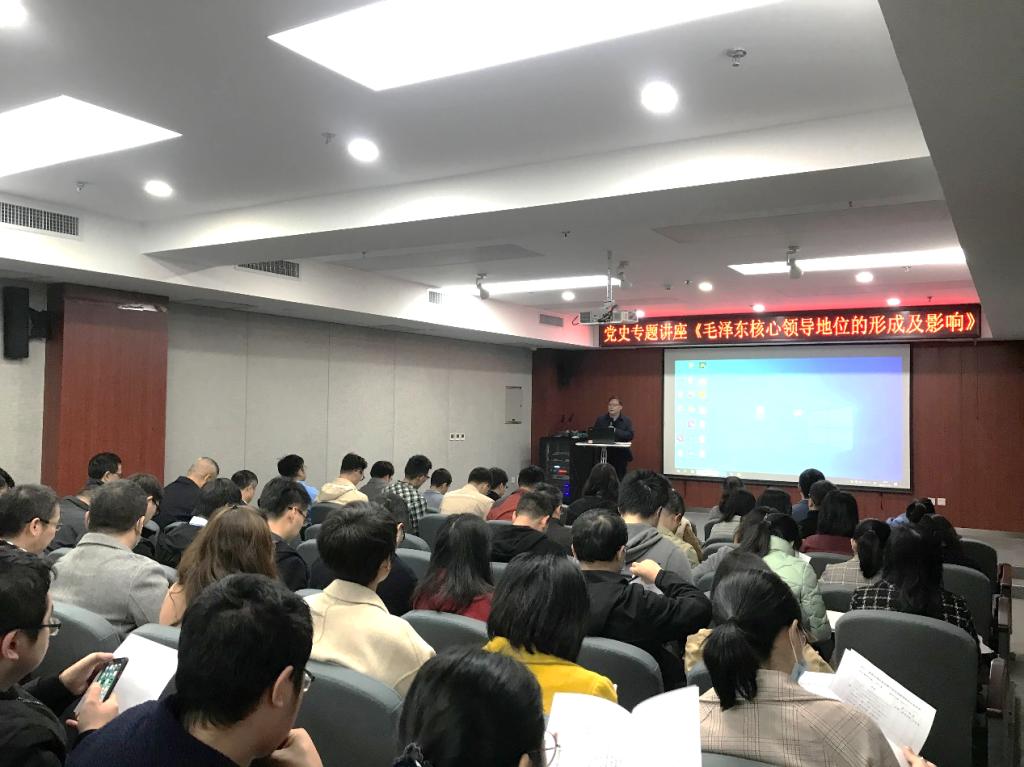 随后,田建军副教授做题为《毛泽东核心领导地位的形成及影响》党史专题讲座。田建军指出,党史是一部丰富的教科书,广大党员需要带着问题学、联系实际学、全面辩证学。作为一个时代巨人,毛泽东的名字与中国革命密不可分,田建军主要基于政治文化视角,从毛泽东个性因素出发,对他的权威领导的形成、类型以及其对中国社会历史所产生的重大影响作了具体阐释,他提到,早期中共领导人均未能胜任历史重任,历史最终选择了毛泽东作为中国革命的政治领袖绝非偶然,这同样取决于毛泽东所具备的独特的历史使命感、注重实践理性、辩证性思维、渊博的学识、坚强的意志等个性因素。
