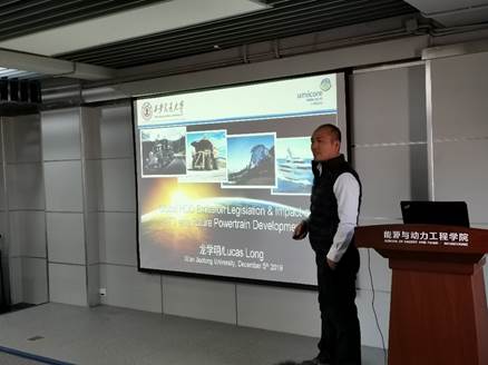 能动校友、苏州优美科公司高级技术经理龙学明先生做了主题为全球重型柴油机排放法规趋势以及对未来动力总成及后处理开发影响的报告,在报告中,他介绍了应对当前排放法规的催化技术,并分享了自己在催化领域的工作体会。在报告中,他还谈及了现阶段国内外排放的法律法规,分析了未来发动机所面临的机遇与挑战。最后,龙先生勉励在校大学生珍惜在校的学习时间,努力学好各门专业课,为以后在企业的岗位上能更快进入工作状态而打好坚实的理论基础。