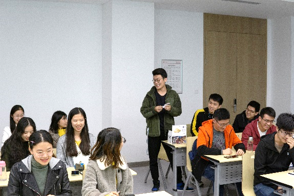 随着游戏环节的开展,会议氛围也进入高潮。班级成员分别匿名在纸条上写下“困扰我的事情、我想对某人说的话、想说却不敢说出口的心里话”,由主持人收集,依托游戏“击鼓传花”,由每位同学抽出纸条并分享纸条上所写事情的解决方法。其中的问题大多涉及科研学习、时间安排以及心态转换等,而同学们也给出相应解决对策,如多咨询师兄师姐、常与导师交流找到自己感兴趣的方向、巧妙利用碎片时间提高工作效率、通过运动或读书等动静转换的方式帮助调整心态……