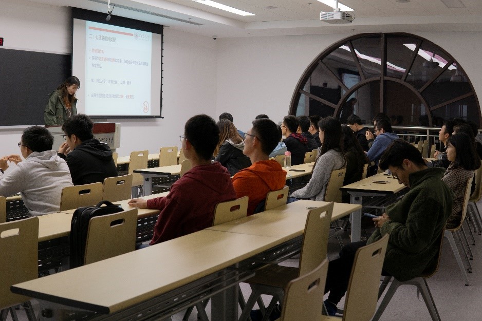 会议伊始,赵晨曦同学向同学们介绍了本次活动的背景,并以自身经历为例,引出主题。而后依托心理健康相关专业素材,从心理危机及其自判、常见心理危机及不良情绪控制等方面以简洁易懂的语言分别进行介绍。她提到,研究生面临着较大的社会压力,如何调节自己的精神、学业压力、心理压力、解决好理想与现实的冲突问题、人际关系问题及恋爱中的矛盾问题、就业压力问题及其它意外危机等显得尤为重要,正确化解这些压力有助于我们健康快乐的生活,当觉得自己实在无法排解时,请一定要及时咨询专业机构。