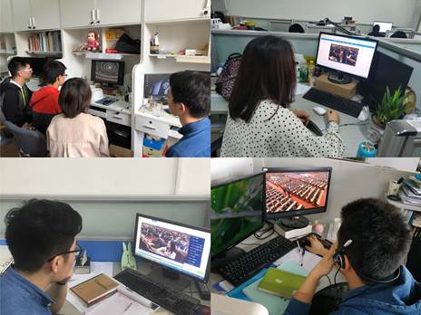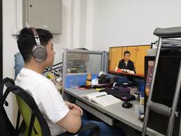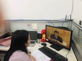 研究生通过电视、网络等多种形式观看大会直播,并展开热烈讨论。