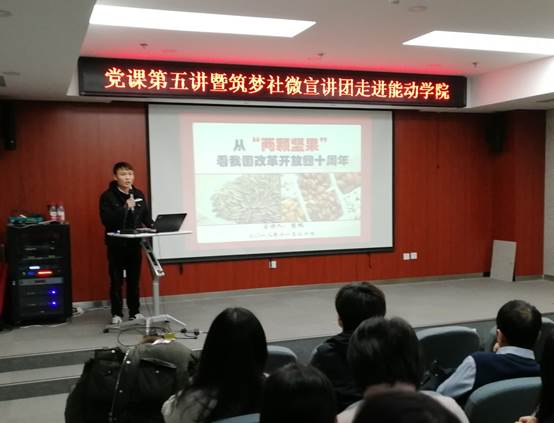 筑梦社宣讲团成以“改革开放40年来祖国伟大的发展变化”为主题做宣讲,司机社