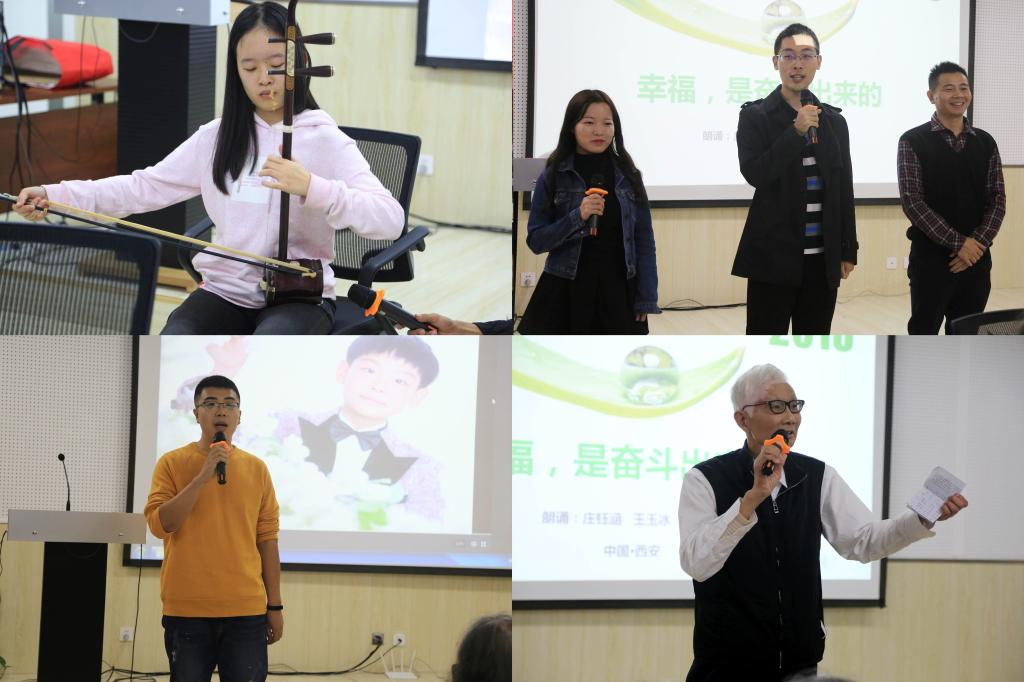 茶话会上硕7025班徐达同学演唱了独唱歌曲《天之大》,能动B74班忻碧平同学二胡演奏《一枝花》,司机社