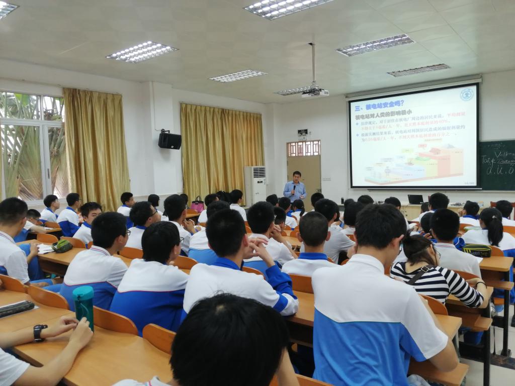 组织开展2019年“教授进中学”系列科普报告活动,教育部国家人才计划入选者、教育部创新团队负责人苏光辉教授为广东省佛山一中和国华纪念中学300名中学生开展“核能,能源之光”主题报告。