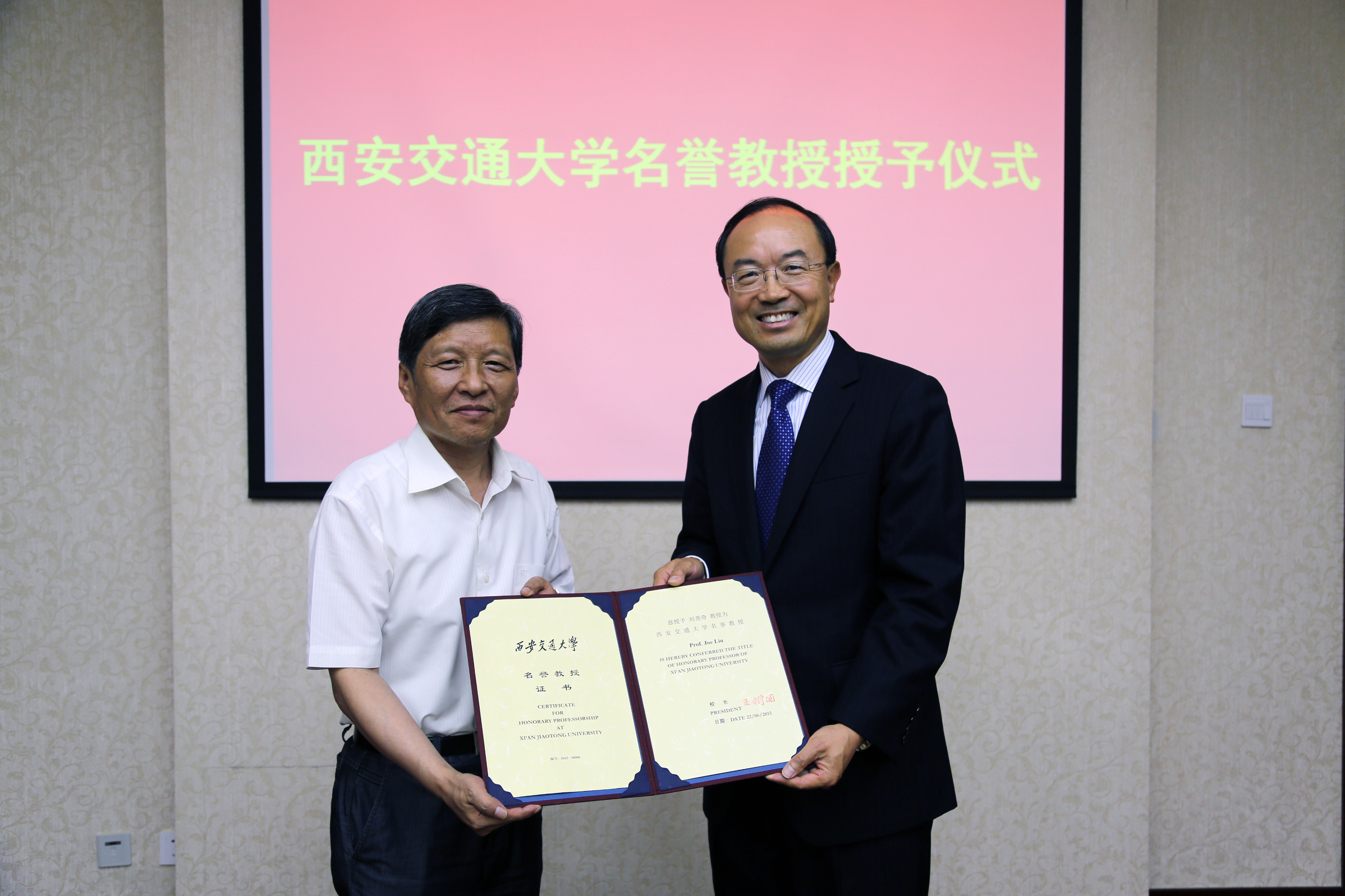6月22日上午王树国校长在科学馆107会议室会见了代表团一行,并向刘尧奇博士颁发“司机社