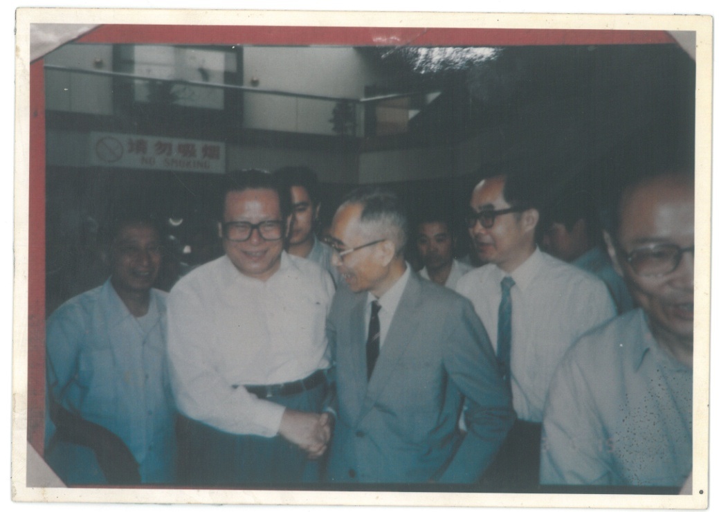 时任国家主席江泽民校友与程迺晋教授亲切握手