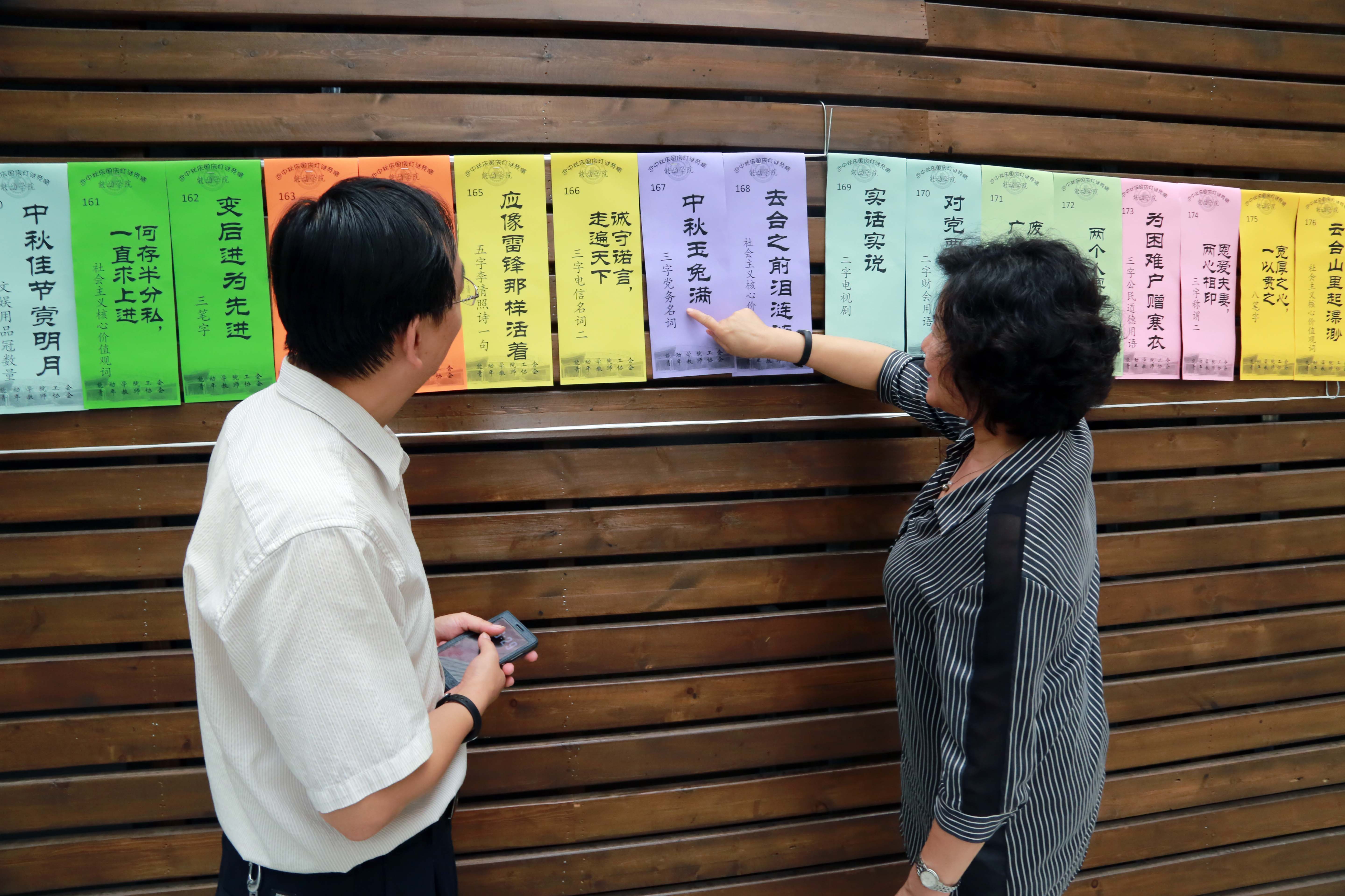 教工同乐德爱同行“迎中秋庆国庆”有奖灯谜竞猜活动顺利举行,活动现场轻松活泼。灯谜活动由院工会主席王海军主持,工会委员和工会小组长到场参与服务。活动现场欢笑声此起彼伏,有的在低头思考,有的在手机上比划,有的还聚在一起相互商量,气氛既竞争激烈又友好。经过激烈竞猜,200个谜底全部揭晓,产生了3名一等奖,5名二等奖,12名三等奖,90名四等奖,院工会予以嘉奖。