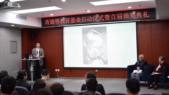 蒋曙新女士讲述了蒋德明老师对教育工作的重视以及兢兢业业的态度,表达了对促成教育基金的学长学姐们的感谢以及对获得本届奖学金同学们的祝贺。