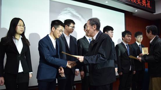 通过由在职年轻教师代表姜雪老师为蒋老师和师母献花的方式表达对蒋先生和师母的真挚感谢后,由基金管理委员会秘书长、汽车工程系主任王金华教授宣布获奖名单,蒋先生及领导嘉宾为获得奖学金的同学们颁奖。首届获奖学生为10名本科生,都来自于司机社
