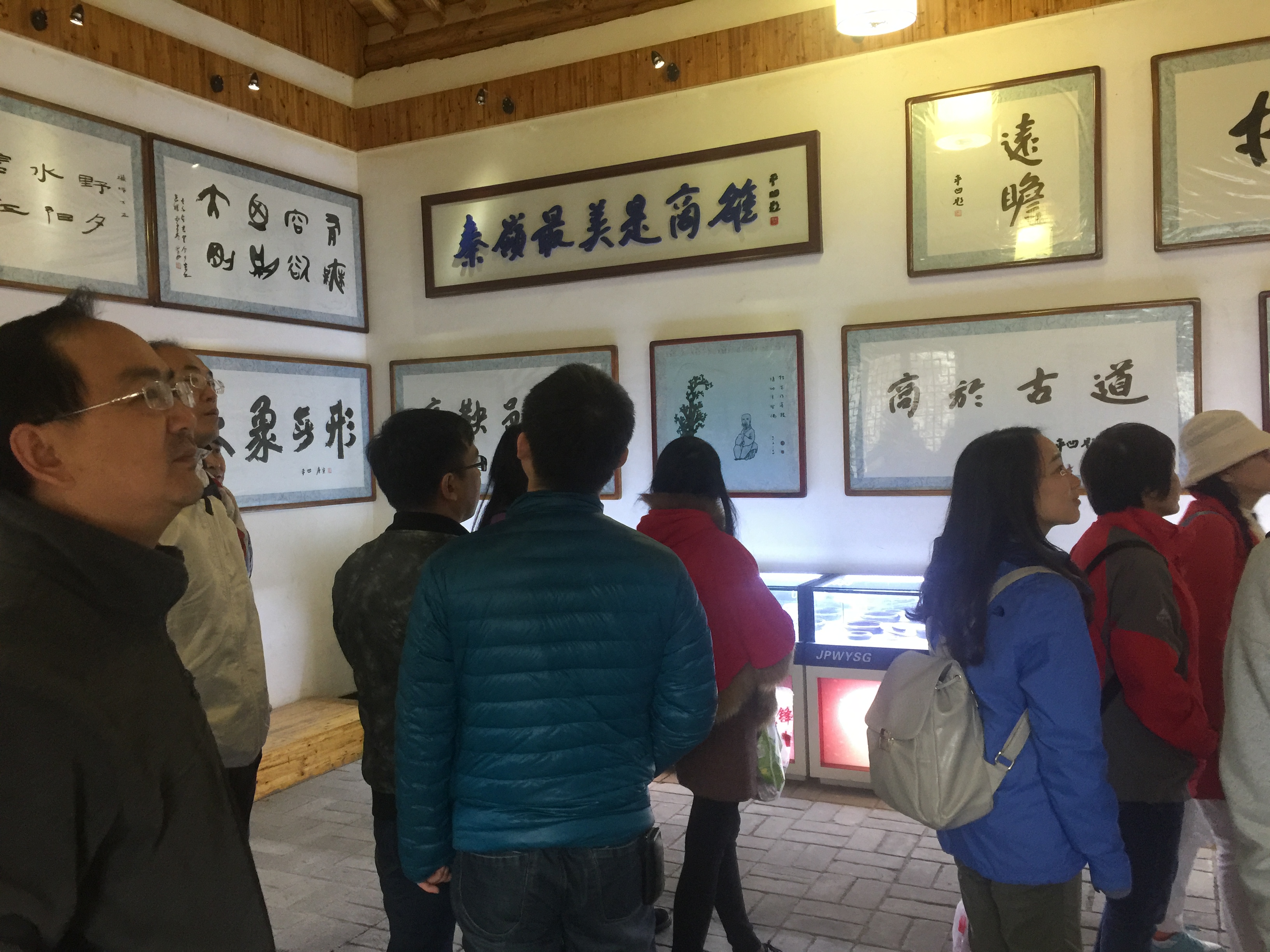 午后大家参观了棣花古镇,棣花古镇位于丹江旁的商洛市丹凤县,早年因盛产棣棠花而得名,唐代诗人白居易三过棣花曾留有“遥闻旅宿梦兄弟,应为邮亭名棣华”的名句。在小说《秦腔》中,著名作家贾平凹把棣花镇的风土人情和山水景色写进了书里。具有清晰的宋金国界线、同时有宋金两个朝代的宋金街;陈列贾平凹生平、作品、书画展的贾平凹老宅;二郎庙和棣花驿等,无不使大家增强了对商洛历史和贾平凹文学的了解。下午大家参观了商洛江南风情汉字之乡小镇花溪弄,其中的仓颉博物馆图文并茂地介绍了文祖仓颉首创的二十八个象形汉字,洛南也由此成为中国文字之乡。晚上6:30参观活动结束,教职工返回学校。