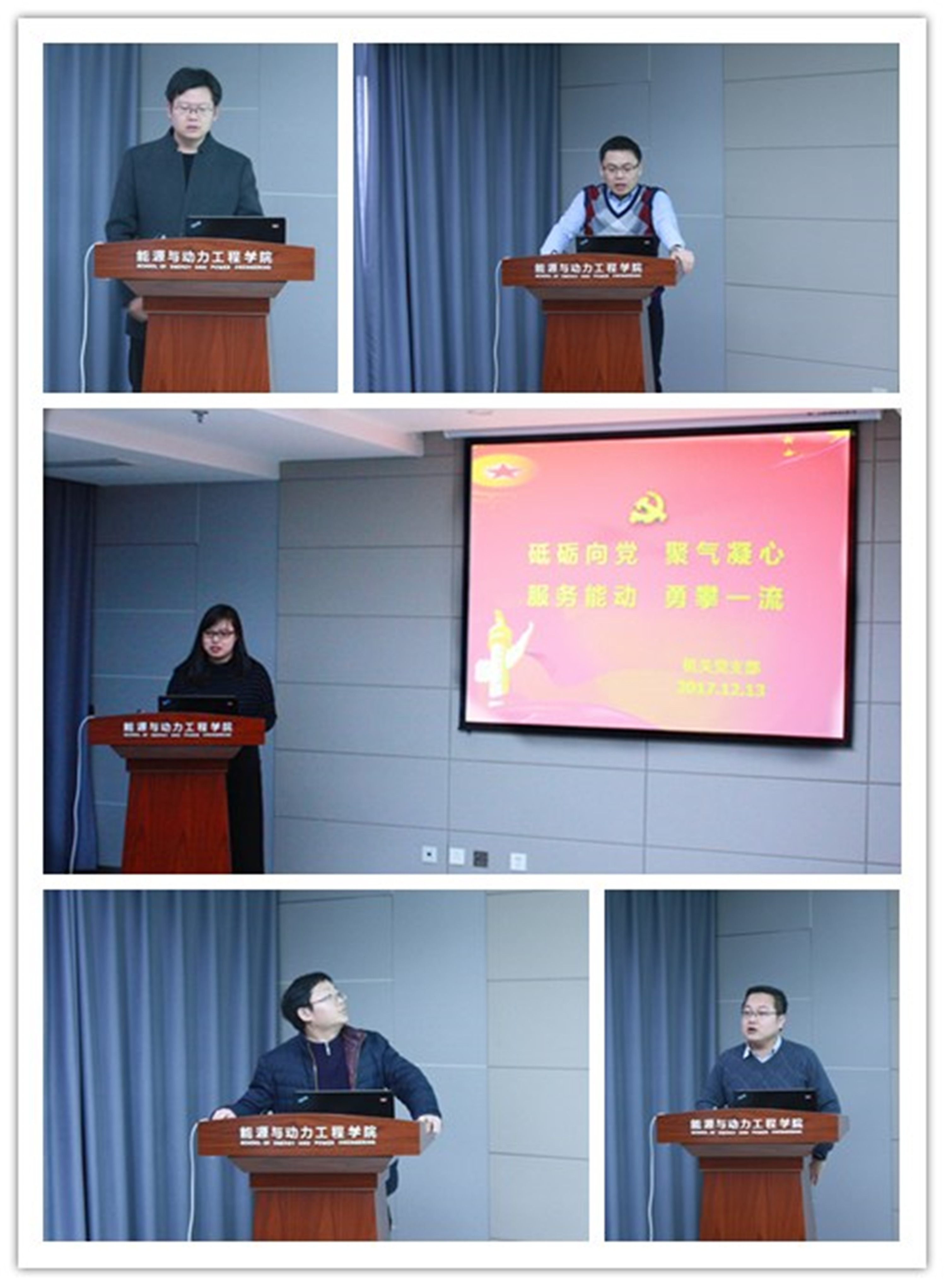 各系所党支部围绕2017年取得的党建进展情况分别进行了工作述职和讨论交流。会上,各支部纷纷介绍了系所党政班子 加强班子建设和制度建设、积极发展党员、发挥党员的先锋模范作用的做法。支部工作规范化,始终坚持“三会一课”制度,从实际出发,建立健全党员学习方式,加强政治思想工作,培养党员党性意识,推进党风廉政建设,促进党务公开制度,营造良好的工作学习氛围。重视党员发展、教育和管理,积极发挥党支部的战斗堡垒作用和党员的先锋模范作用,进一步加强精准帮扶工作,如积极参与“三秦教师结对帮扶贫困学生”,与学院困难退休人员进行一对一帮扶等。