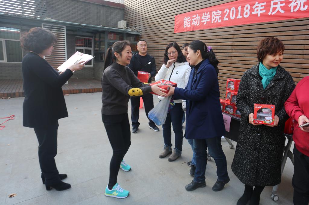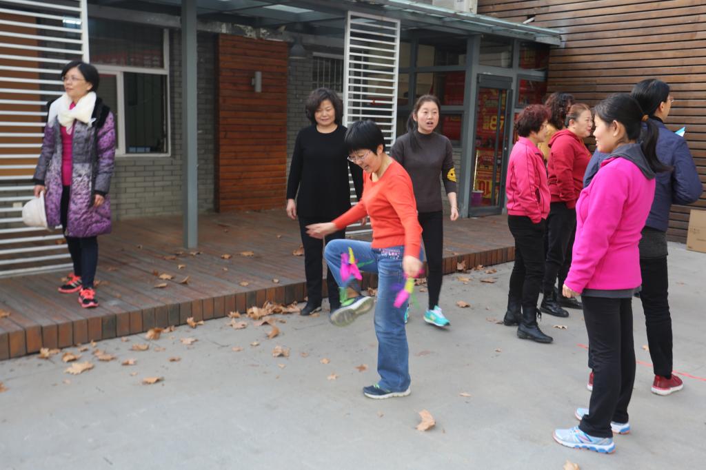 工会在北二楼前举办了一场别开生面的“三八”妇女节趣味运动会,比赛项目有投乒乓球、一分钟跳绳、一分钟踢毽子比赛。