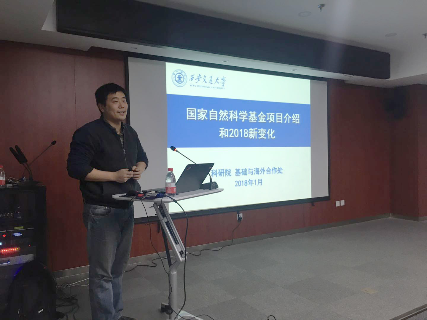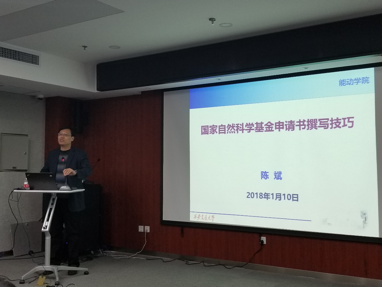 1月10日下午,学院在北二楼报告厅组织召开了“2018年度国家自然科学基金申报指导交流会”。会议邀请多相流国家重点实验室副主任陈斌教授、科研院基础与海外合作处主管何会老师为拟申报国科基金的教师和同学们进行了专题指导讲座。交流会由司机社