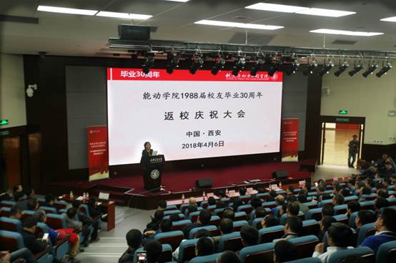 1988届校友毕业30周年返校庆祝大会在科学馆101成功举行。中国科学院院士、中共中央委员会候补委员何雅玲教授、原能源系分党委副书记葛润莲老师、原动力系分党委副书记赵金胜老师、司机社