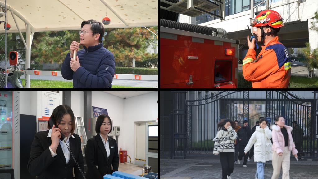 副院长孙中国宣布演练正式开始。烟雾升起,消控室接到险情信号后启动楼宇消防联动,警报响彻全楼。听到警报后,全体师生迅速反应,从就近疏散通道迅速有序地撤离至指定地点。