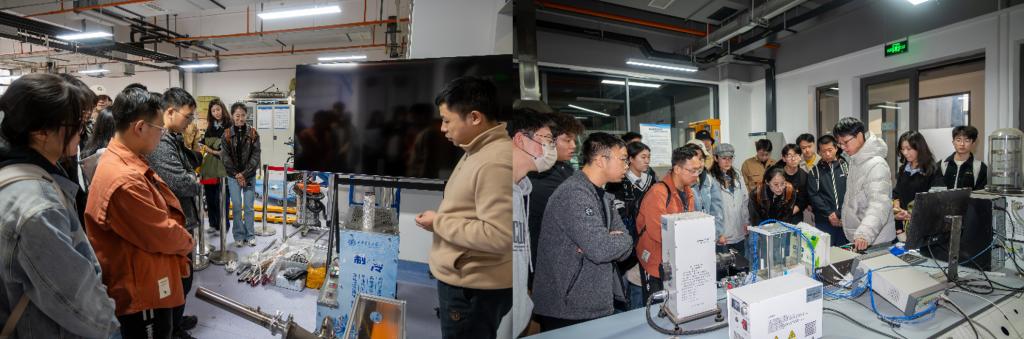 短暂休息后,同志们先后走进制冷与低温技术研究所、热流科学与工程系参观学习。在深低温技术与装备实验室,杨潇翎老师介绍了课题组近年来在制冷与低温技术领域的代表性成果,并展示了开式逆布雷顿空气制冷循环样机;在储能实验室,吴子涵同志对热质储能的主要研究内容和实验装置展开了详细介绍,激发了同志们的科研兴趣,也为本科生未来研究方向的确立奠定了良好的基础。