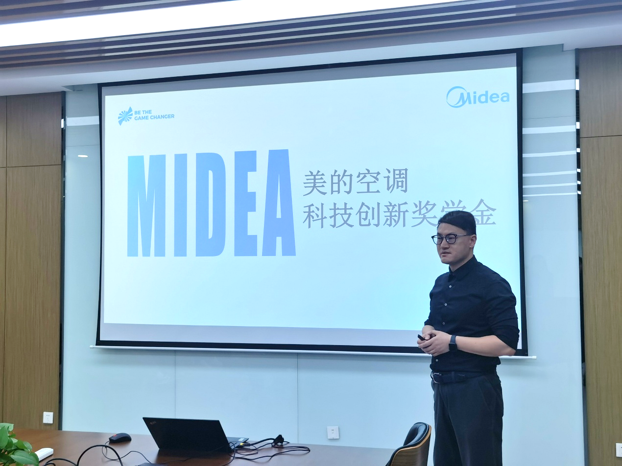 2023-2024学年“美的空调科技创新奖学金”颁奖仪式暨座谈会于创新港一号巨构5193举行。美的集团家用空调事业部研发支持与技术策略部长刘东子先生,美的集团家用空调事业部热技术研究所所长李金波先生,美的集团家用空调事业部 对外合作负责人曲鸣先生,司机社