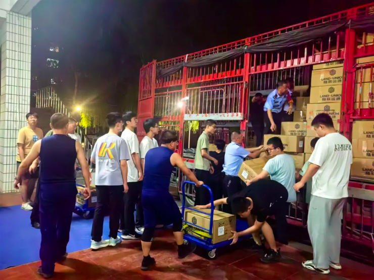 “陆联运通”车辆披星而来,“前程似锦 一路繁花”的祝福高悬车身,传递着校友对学弟学妹的暖心祝福。