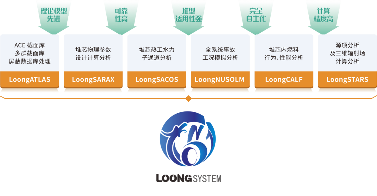 该项目突破了中子光子截面数据制作技术、复杂共振计算技术、精准功率分布计算技术、盒间流模拟技术、自动减方差技术等一系列核心技术,获授权发明专利10项,软件著作权6项,形成了液态金属冷却快堆计算分析平台——龙码系统(Loong System),该系统包含六大核心软件,即核数据处理软件LoongATALS、堆芯物理分析软件LoongSARAX、子通道分析软件LoongSACOS、系统安全分析软件LoongNUSOLM、燃料性能分析软件LoongCALF以及源项屏蔽分析软件LoongSTARS,满足液态金属冷却快堆设计计算以及安全审评需求。经第三方测试,龙码系统核心代码自主率超95%,打破了国际核大国的技术封锁。