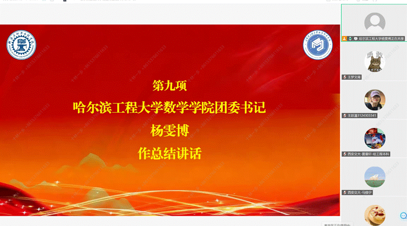 团委书记黄亚龙、团委副书记张玺晗、研究生辅导员马嘉谊以及八个支部140余名同学参加。会议由哈尔滨工程大学数学学院团委书记杨雯博主持。