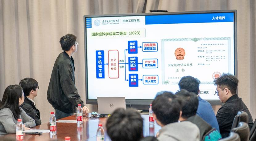 交流会上,西安电子科技大学电气工程系学生尚帅从学院历史沿革、学科布局、人才培养体系三个维度,介绍机电工程学院整体建设情况,更深刻认识到学院在学科实力上的深厚底蕴、前沿布局与人才培养上的鲜明特色,充分展现出学院在电气领域的综合实力与发展潜力。