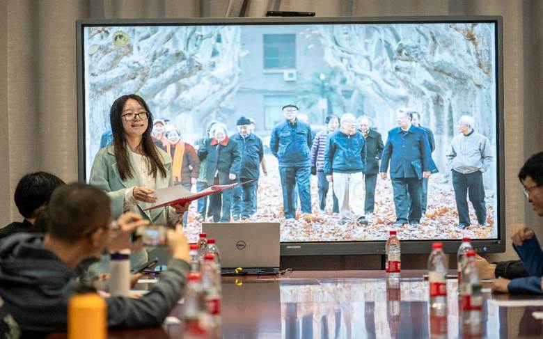 的西迁历程,提及彭康教授在物资匮乏时期带领团队坚持科研的事迹,同时介绍了在西迁过程的一封封书信中体现了师生克服地域、环境困难,扎根西部开展教育科研的经历。她阐述西迁精神“胸怀大局、无私奉献、弘扬传统、艰苦创业”的核心内涵,并说明西迁精神在当代交大学子参与国家重大科研项目、投身西部基层建设中的鲜明体现。