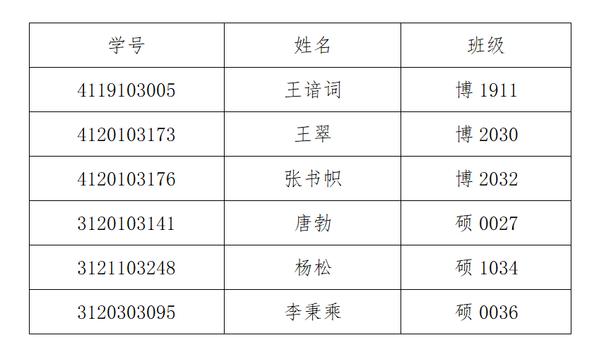 2022年司机社 拟推荐优秀研究生标兵候选人名单