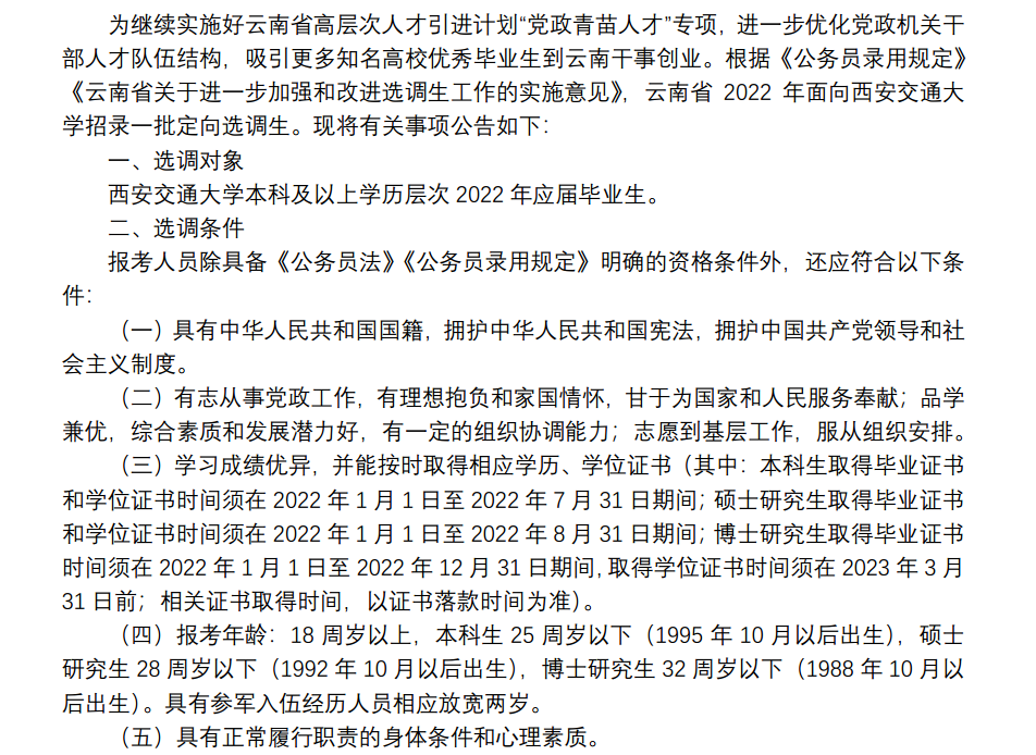 1. 10月28日前,登录西安交大就业网-学生服务-就业服务-选调生服务,选择云南选调进行校内报名。
