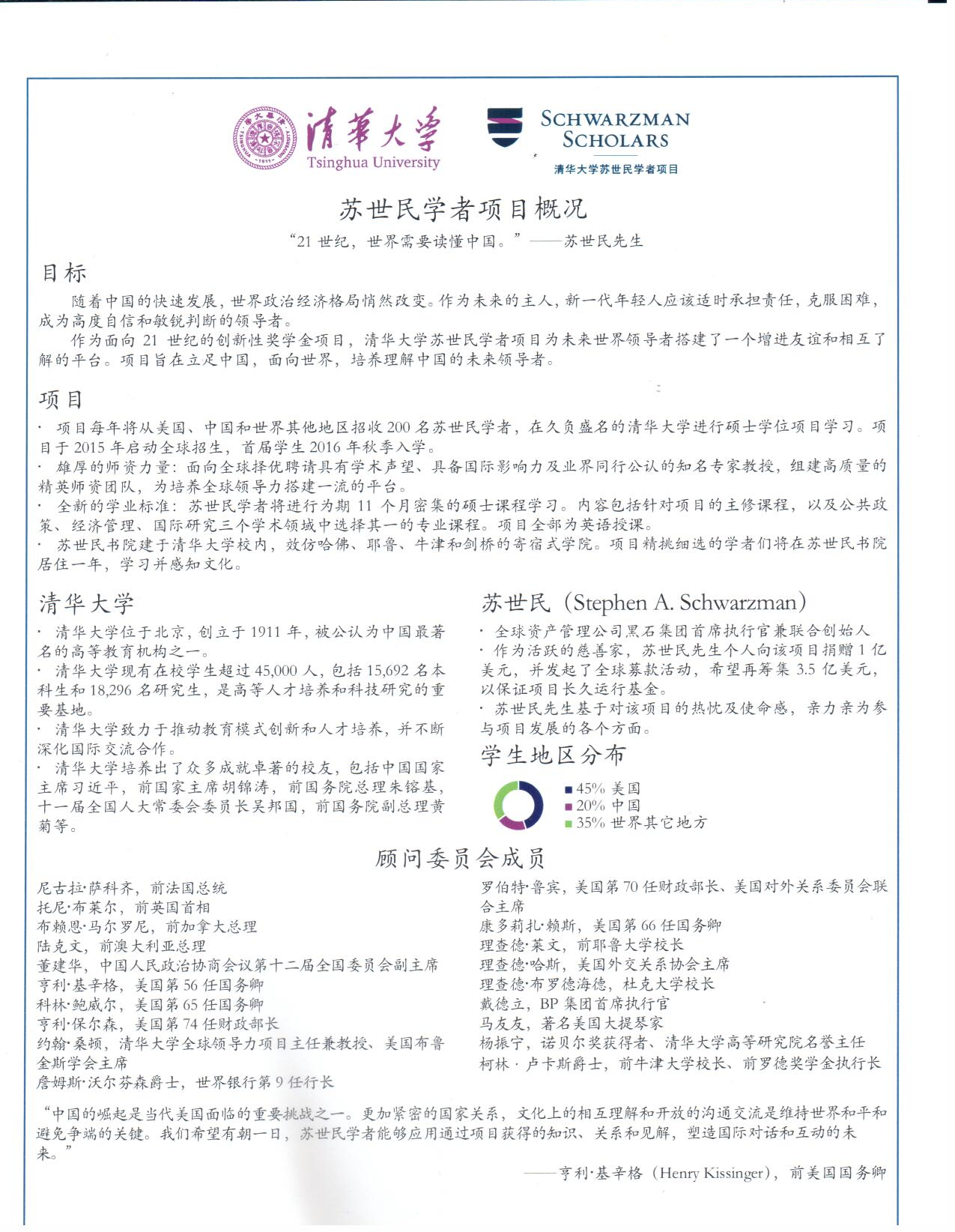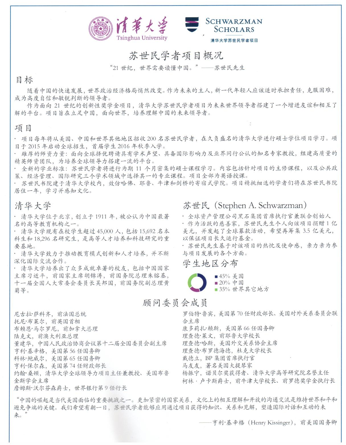清华大学苏世民学者项目简介:
